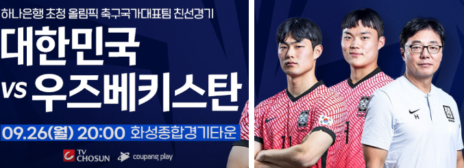 올림픽대표 9월 26일(월) 20시 우즈베키스탄