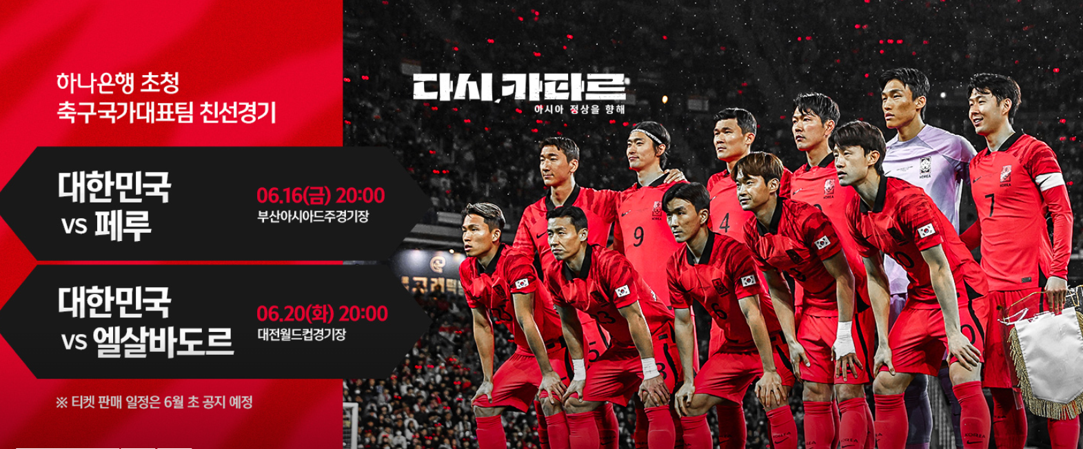 오늘 6월 2일 오후 8시에 브라질과 친선경기 일정을 시작으로 카타르 월드컵을 대비하기 위해 하나은행 초청으로 친선경기가 열립니다.