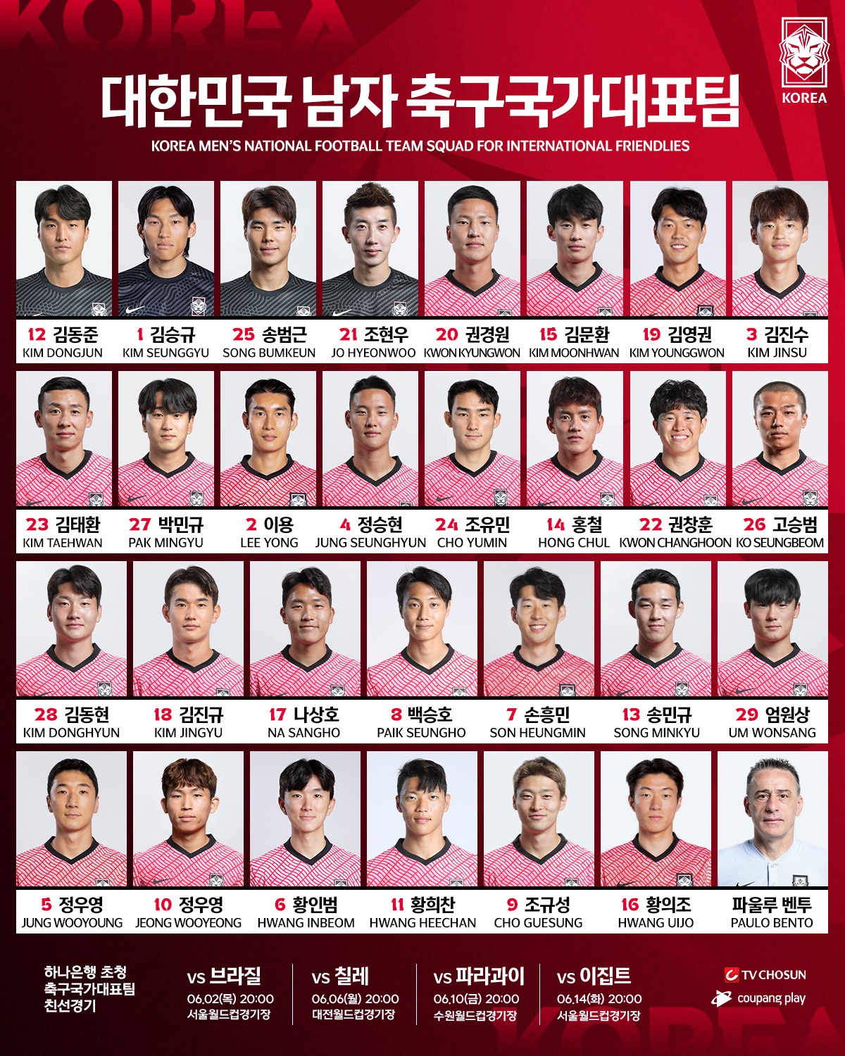 축구 국가대표 경기 일정은 브라질을 시작으로 칠레, 파라과이, 이집트 총 4개 국가이며 경기 일정은 모두 6월에 있습니다.