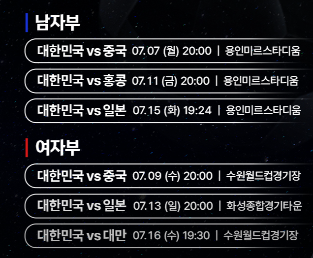남자 축구 대표팀 경기일정2026 월드컵 아시아 3차 예선3.20(목) 20:00 vs 오만 중계 : SBS, 쿠팡플레이 3.25(화) 20:00 vs 요르단 중계 : MBS, 쿠팡플레이 한국 월드컵 예선 일정 시간, 결과 하이라이트 |
